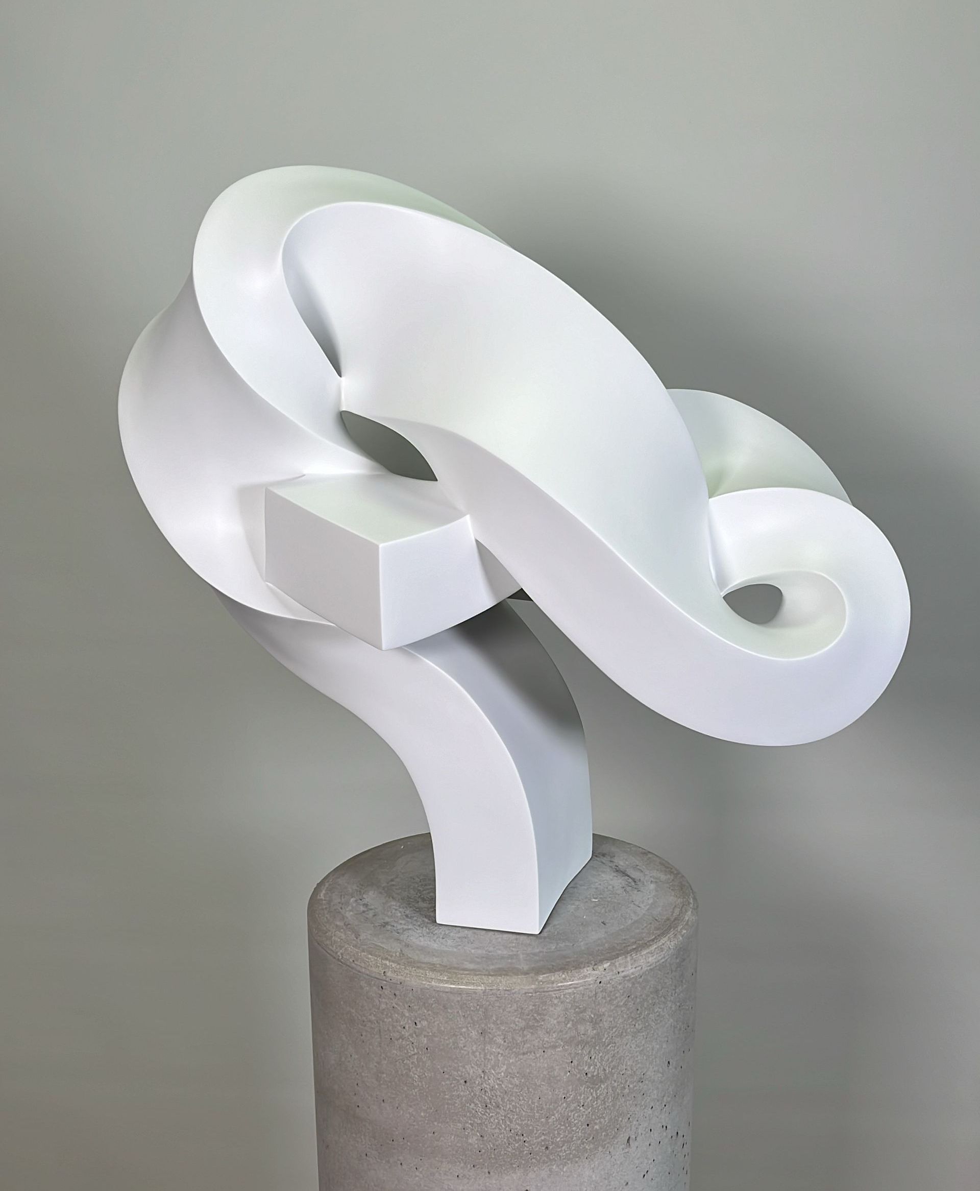 Stephan Marienfeld became internationally known for his signature BONDAGE sculptures. He plays with the tension and curvature of surfaces and the resulting light reflections, making his works distinctive, independent, and striking. In his sculptures, he combines aluminum with vibrant colors and uses bronze to give them a certain depth and structure, bringing them to life. This provides the viewer with a unique artistic experience.